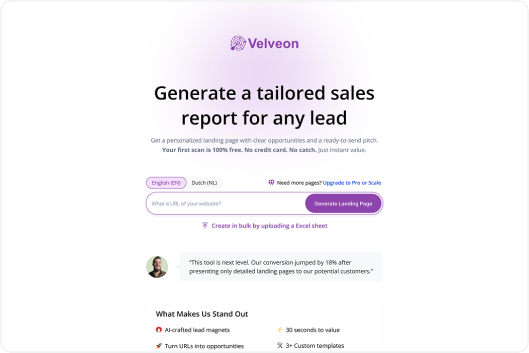 Maxendi analyzes any website and creates a customized one-page sales site with competitor comparisons, unique selling points, and clear CTAs.